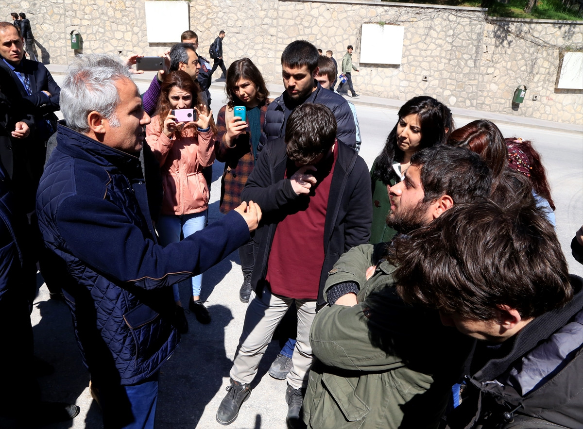 Üniversitenin Cumhuriyet kapısına kadar yürüyen öğrenciler, burada bir süre, İl Emniyet Müdürlüğü Güvenlik Şube Müdürü ile görüştü.