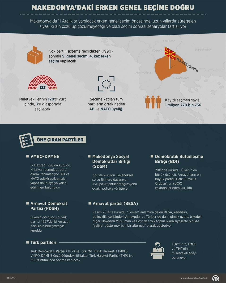 ÜSKÜP (AA) - ADMİR FAZLAGİKY/İVANA RAMADANOVA - Makedonya'da 11 Aralık'ta yapılacak erken genel seçim için kampanyalar devam ederken, uzun yıllardır süregelen siyasi krizin çözülüp çözülmeyeceği ve seçim sonrası olası senaryolar da tartışılmaya devam ediyor.