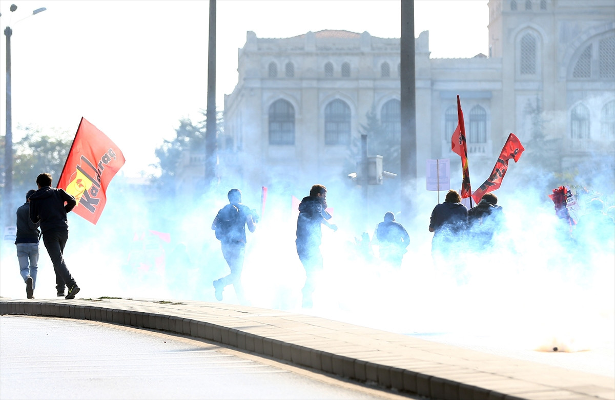 ANKARA (AA) - Terör örgütü DAEŞ mensubu iki canlı bombanın Ankara Garı önünde gerçekleştirdiği saldırıda yaşamını yitirenlerin anısına düzenlenen program için alana girmeye çalışan bazı gruplara, polis ekipleri gazla müdahale etti.