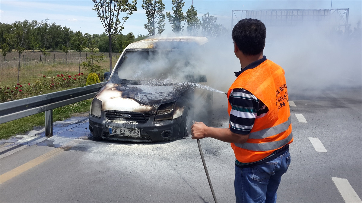 Yenimahalle ilçesindeki Ankara Bulvarı'nda, İstanbul istikametine seyir halinde olan Suat Birgün yönetimindeki 06 EZ 8582 plakalı araçta bilinmeyen nedenle yangın çıktı.