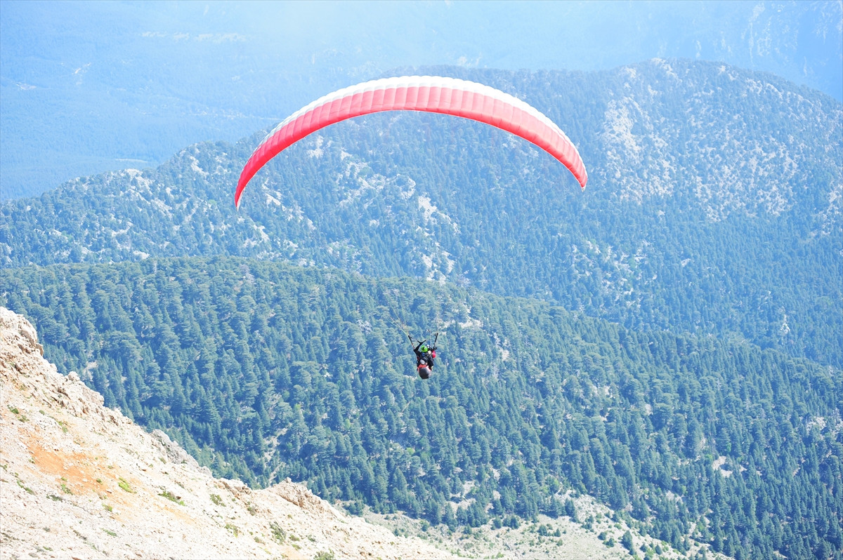 Kemer'de tatil yapan yerli ve yabancı turistler, 2 bin 365 metre yüksekliğindeki Tahtalı Dağı'na çıkarak bungee jumping ve yamaç paraşütü yapma imkanı buluyor.
