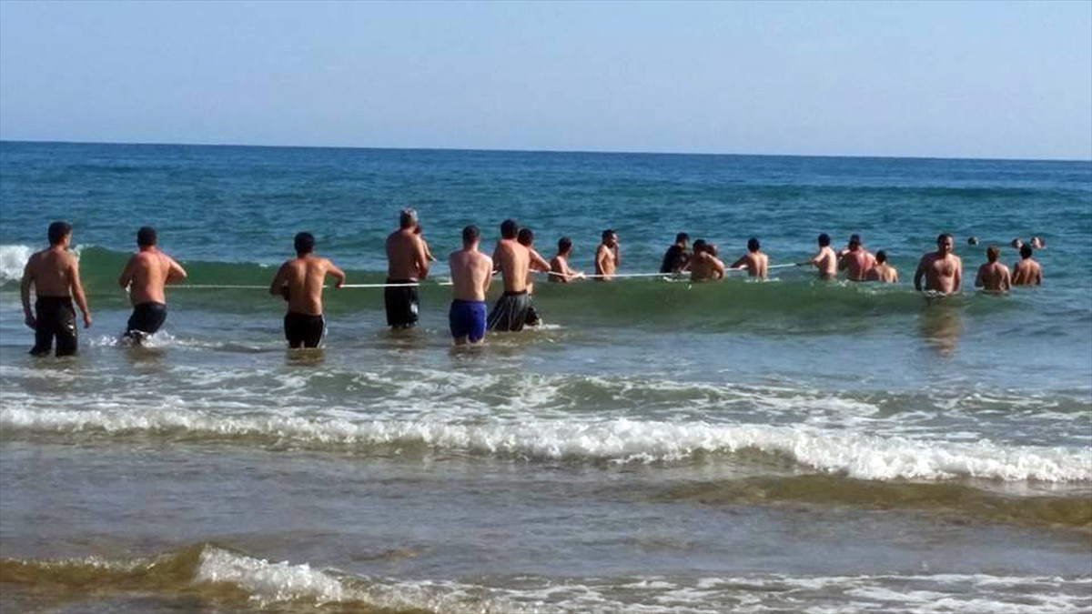 Yardım çığlıkları üzerine plajdaki büfenin işletmecisi Ahmet Erdoğan ve bir cankurtaran olaya müdahale etti. Çevredekilerin de yardımıyla boğulma tehlikesi geçiren 6 kişi halatlarla kıyıya çıkarıldı.