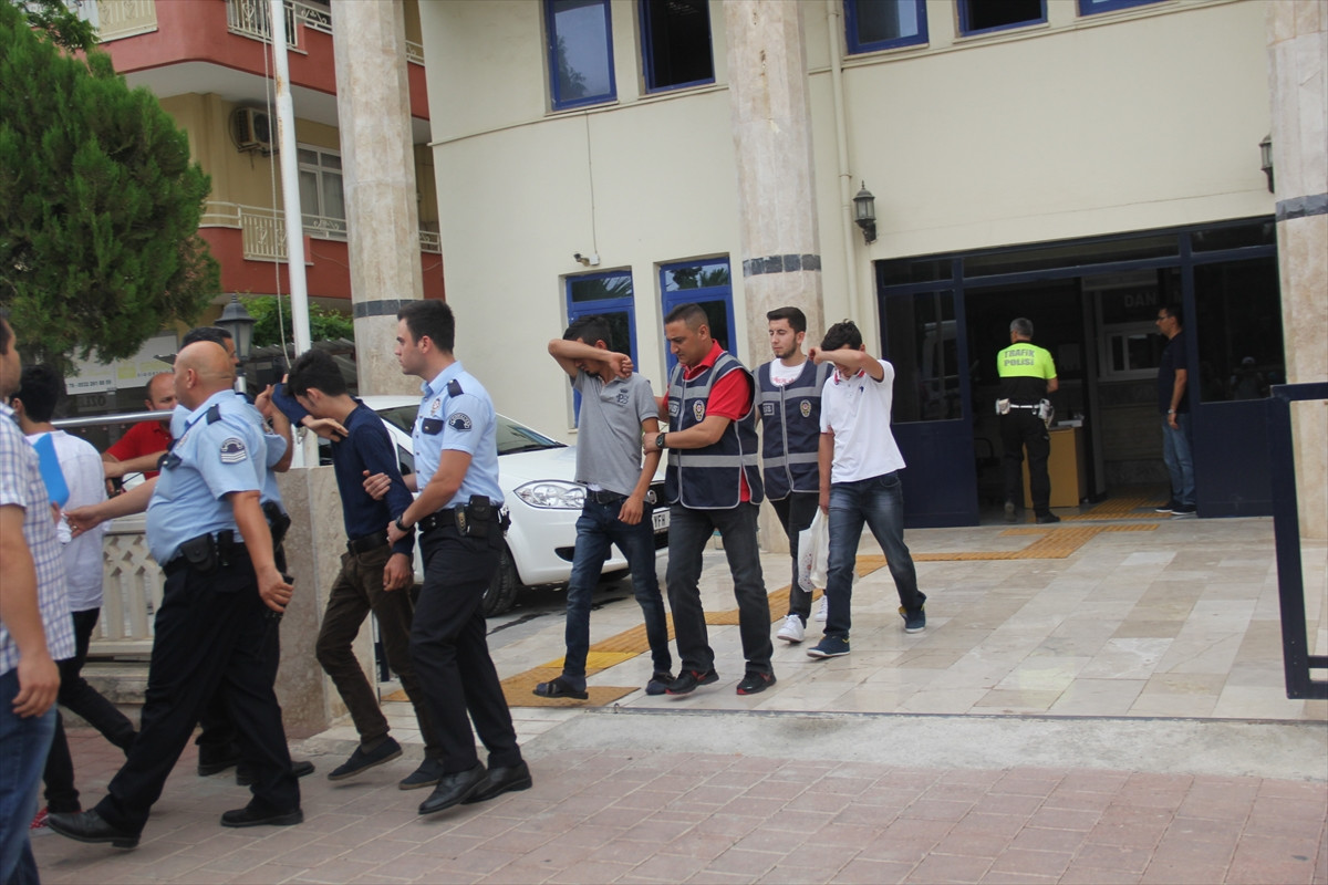 Serik Emniyet Müdürlüğündeki işlemleri tamamlanan zanlılar, daha sonra adliyeye sevk edildi.