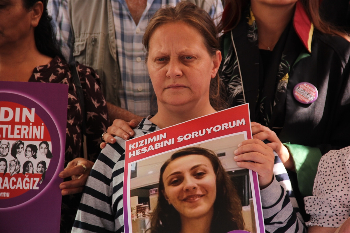Duruşma sonrasında adliye önünde bir araya gelen bazı kadın hakları savunucuları, pankart açarak kadın cinayetlerini protesto etti.