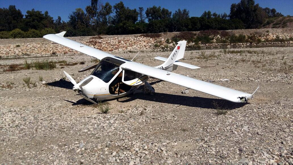 ANTALYA (AA) - Antalya'daki Türk Hava Kurumu (THK) Karain Meydanı ve Havacılık Eğitim Merkezi'nde düzenlenen Uluslararası Karain Fly-in etkinliğine katılmak üzere gelen ultralight tipi bir uçak, Boğaçayı kıyısına zorunlu iniş yaptı.