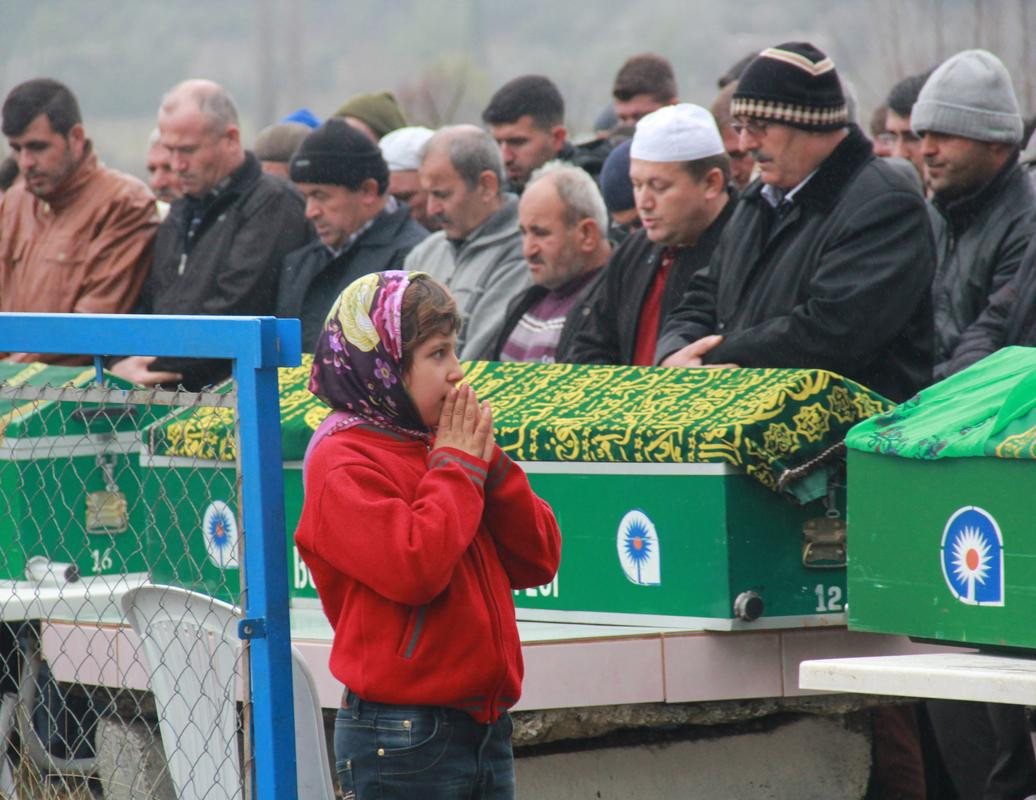 Anne, baba ve oğullarının cenazesi öğle namazı sonrası kılınan cenaze namazının ardından Güloluk Mezarlığı'nda yan yana defnedildi.
