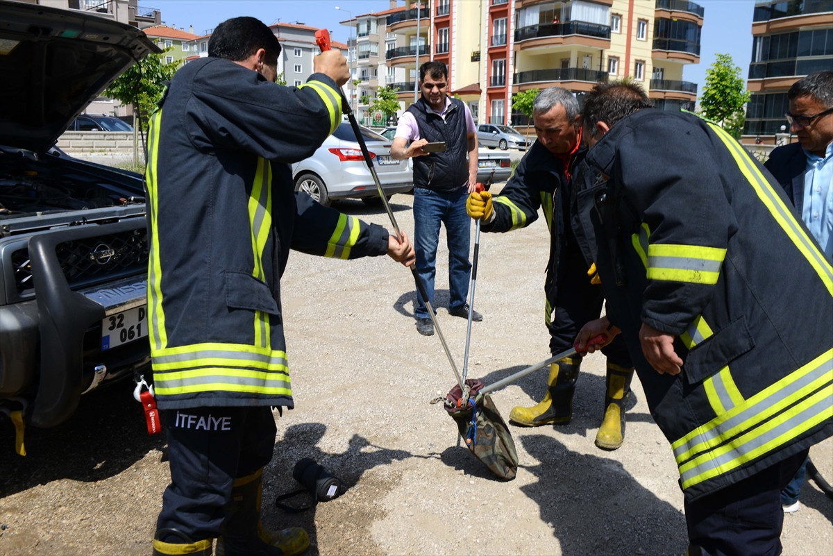 İhbar üzerine olay yerine gelen ekipler, yaklaşık bir saat süren çalışmanın ardından bulunduğu yerden çıkardığı yılanı, poşete koyarak kent merkezi dışındaki bir araziye bıraktı.