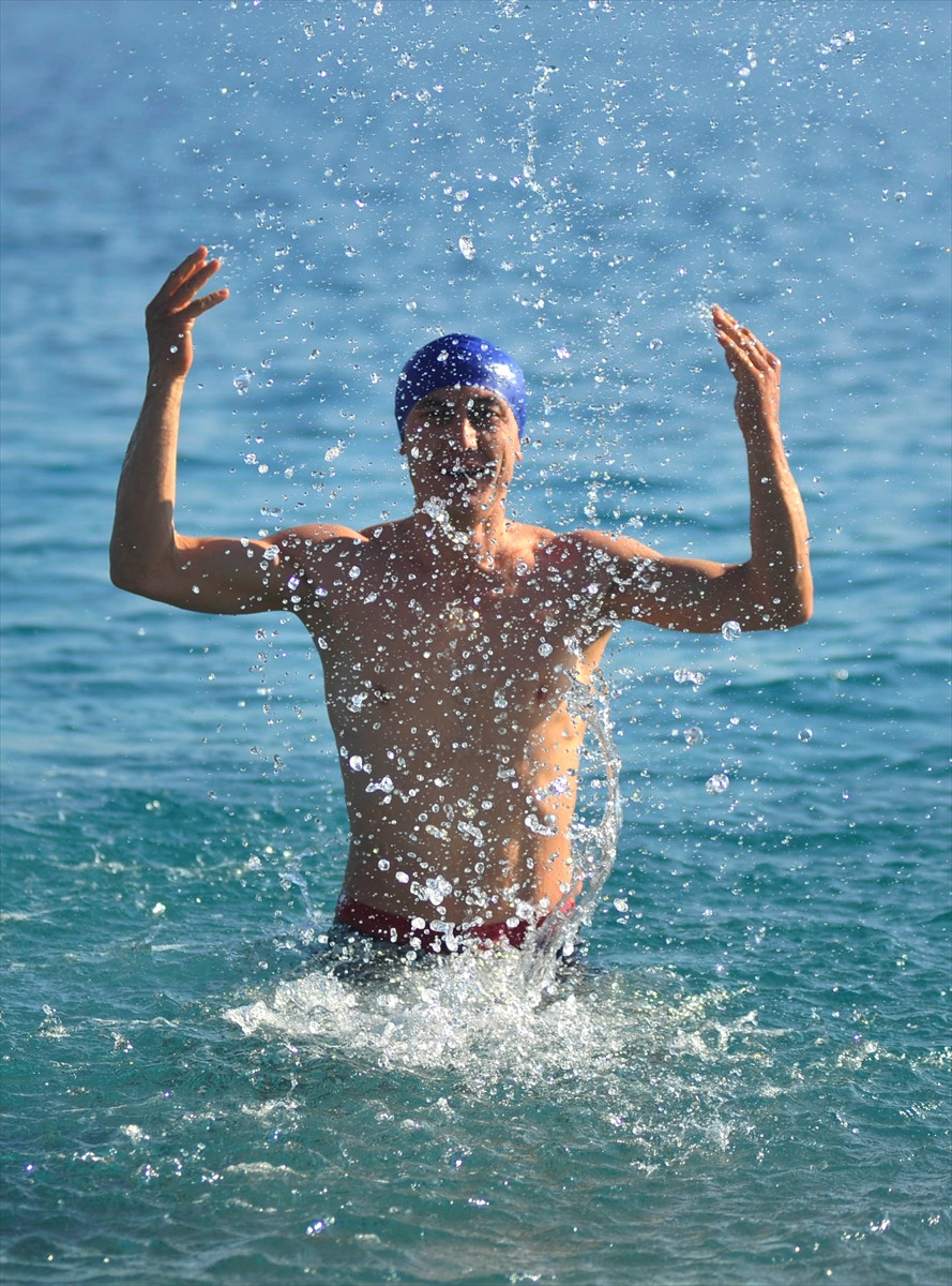 Aralık ayının son haftasında denize giren Mevlüt Çelik, Antalya'nın havasının çok güzel, deniz suyunun sıcak olduğunu belirterek, her mevsim denize girdiklerini söyledi.