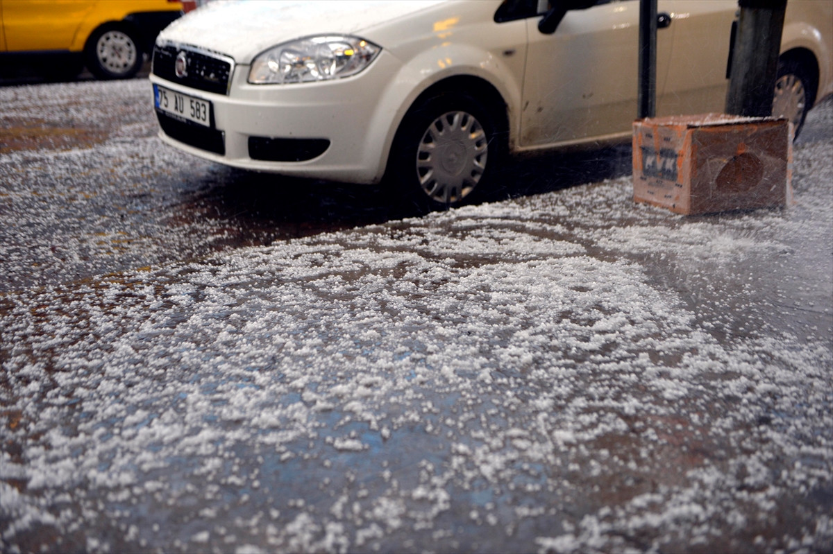Kentte, kısa süreliğine etkili olan sağanak ve dolu nedeniyle cadde ve sokaklar su altında kaldı.