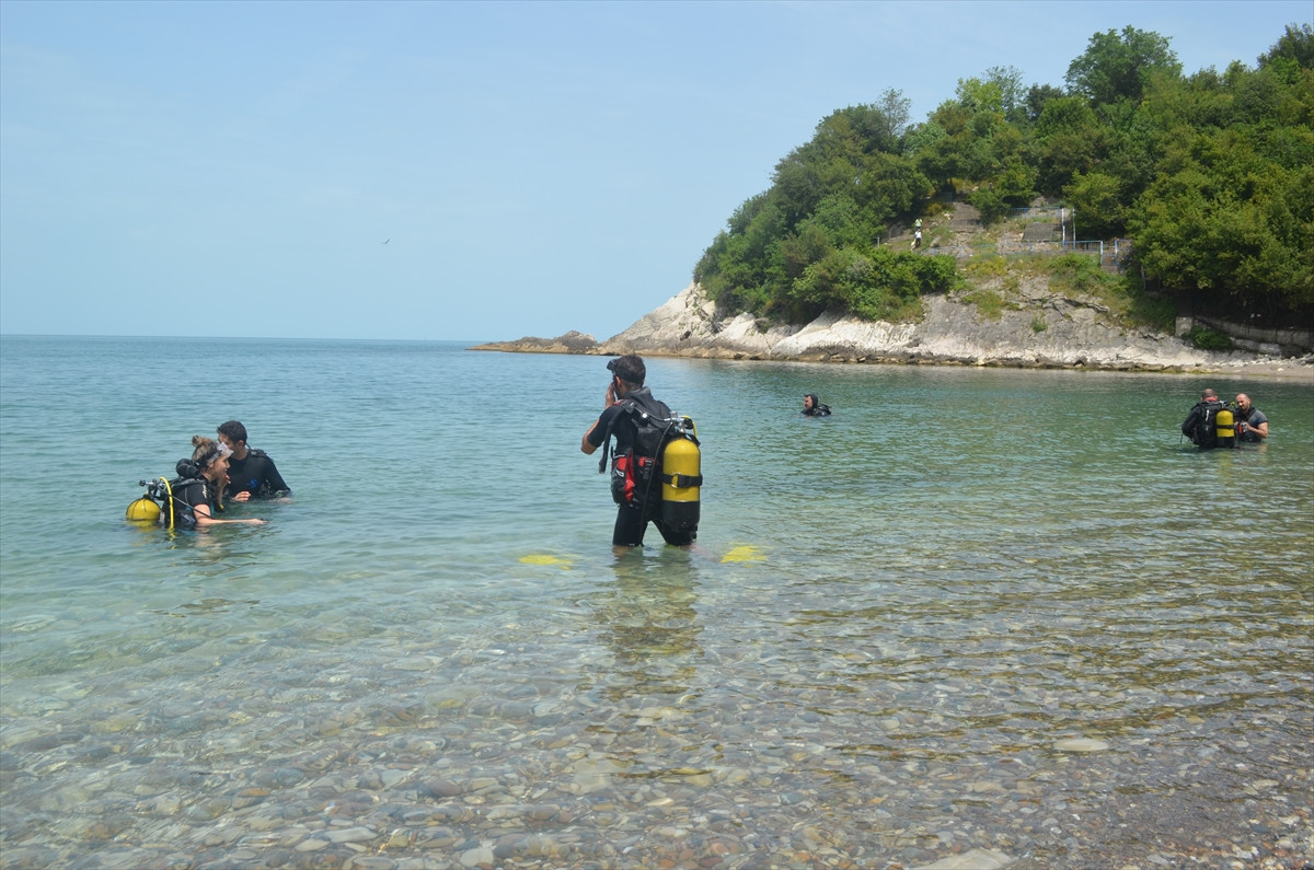 DÜZCE (AA) - Düzce Üniversitesi (DÜ) Fen Edebiyat Fakültesi Arkeoloji Bölümü öğrencilerine su altında da araştırma yapabilmeleri için " su altı dalış" eğitimi veriliyor.