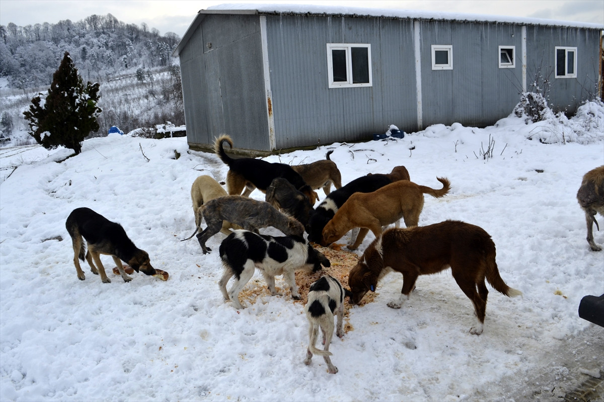 ZONGULDAK (AA) - Alaplı Belediyesi Temizlik İşleri ekipleri, ilçe genelinde etkili olan kar yağışı nedeniyle yiyecek bulmakta zorlanan sokak hayvanları için yemek fabrikası, pastane ve lokantalardan artan yemekleri toplayarak besleme noktaları ve hayvan barınma evine bırakıyor.