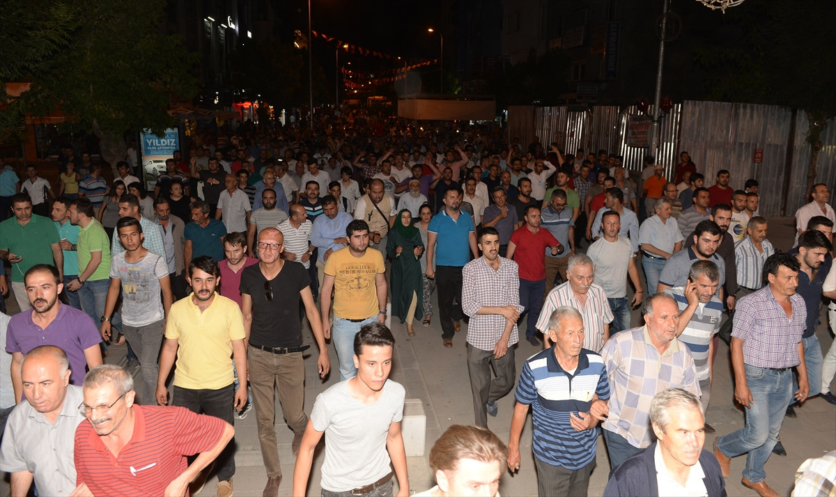 Köme Mahallesi'ndeki AK Parti İl Başkanlığı binası önünde toplanan kalabalık, askeri kalkışmaya tepki gösterdi.