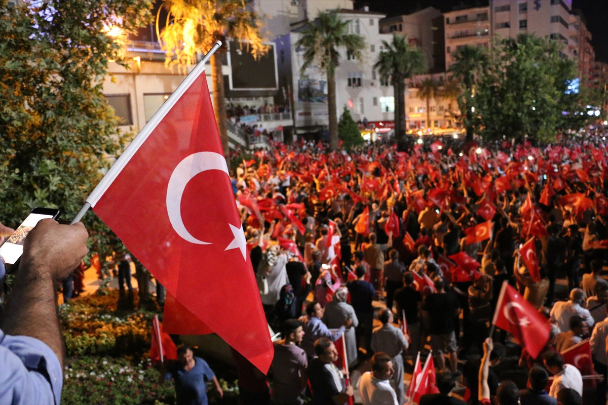 Vatandaşlar, askeri kalkışmaya ve FETÖ/PDY'ye tepki gösterirken, Cumhurbaşkanı Recep Tayyip Erdoğan lehine slogan attı.