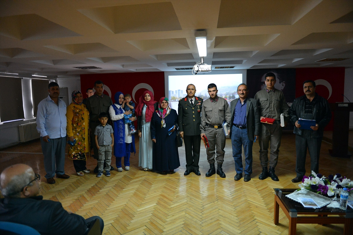 Konuşmanın ardından askerlere aileleriyle birlikte tezkere belgeleri ve çeşitli hediyeler verildi. Askerlerin tezkere belgeleri babaları tarafından çocuklarına takdim edildi. Eğitimlerde başarı gösteren askerlere de başarı belgeleri takdim edildi.