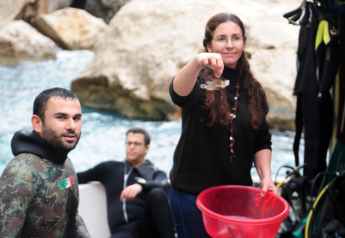 Kocaburun açıklarında yapılan dalışta, yerli ve yabancı uzmanlar dalgıçlar eşliğinde yaklaşık 20 metre derinlikte aslan balığı aradı. Dalış sırasında biri yetişkin 3 aslan balığına rastlandı.