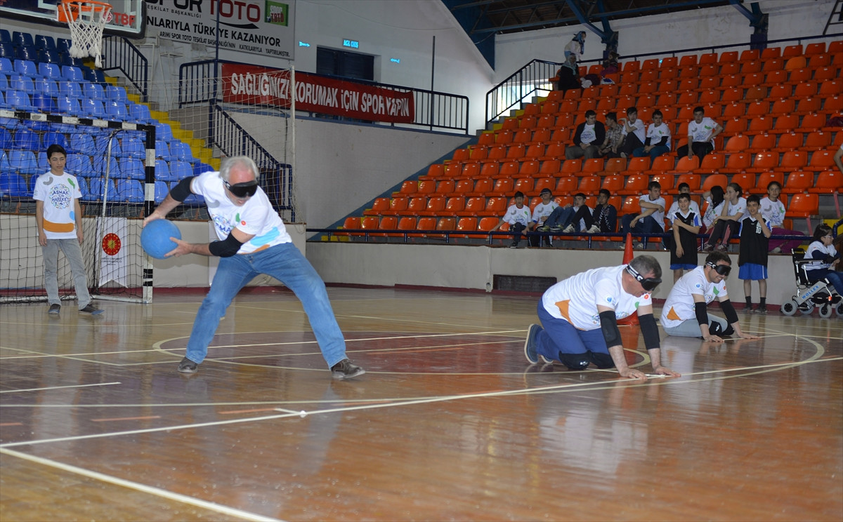 Spor gösterilerine de yer verilen etkinlikte, protokol mensupları görme engellilere özgü bir spor olan goalball oynadı.