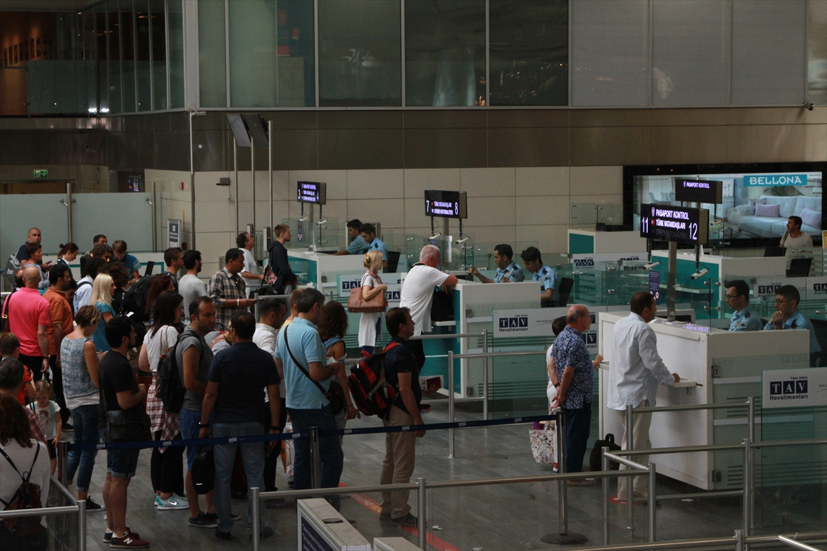 Yaşadıkları ülkelere dönüş için tatilin son gününü tercih eden gurbetçiler, dış hatlar terminali pasaport noktasında uzun kuyruklar oluşturdu.
