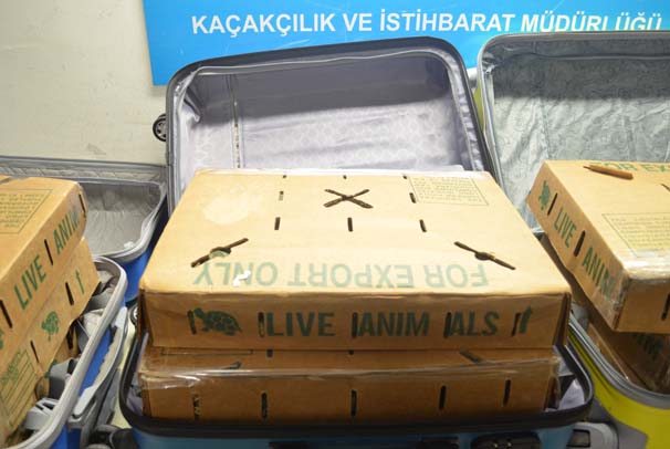 Lübnan'dan İstanbul'a gelen bir uçakta bulunan valizler mobil bagaj tarama sistemi vasıtasıyla kontrol edildi. Yapılan kontrollerde 3 valiz dolusu yavru kaplumbağa bulundu. Atatürk Havalimanı'nda gerçekleşen olaya ilişkin 3 kişi gözaltına alındı.