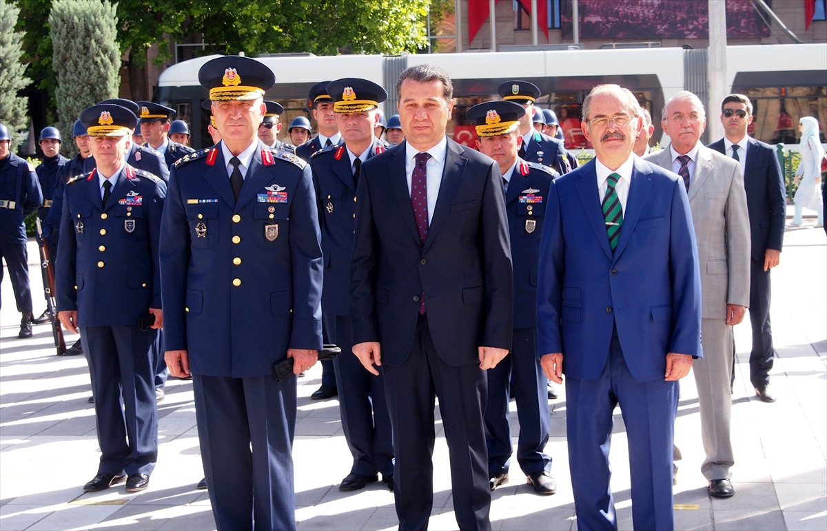 Vilayet Meydanı'ndaki Atatürk Anıtı'na çelenk konulmasının ardından saygı duruşunda bulunulan törende, İstiklal Marşı okundu.