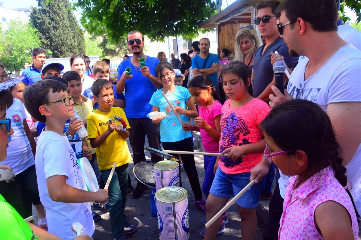 Çocukların da katıldığı atık orkestrası, geri dönüşüm malzemelerinden yapılan müzik aletleri ile ritim tuttu. Orkestranın gösterisi, vatandaşlardan da büyük beğeni topladı.