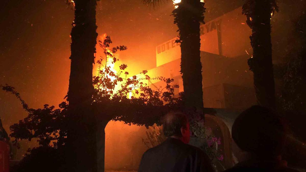 Polis ekipleri, kundaklama şüphesiyle otel yakınında bir kişiyi gözaltına aldı. Şüphelinin, geçen hafta bir aracı yakmaya çalışırken suçüstü yakalanan, Manisa Ruh ve Sinir Hastalıkları Hastanesinden de 2 gün önce taburcu edildiği belirtilen R.S. olduğu öğrenildi.