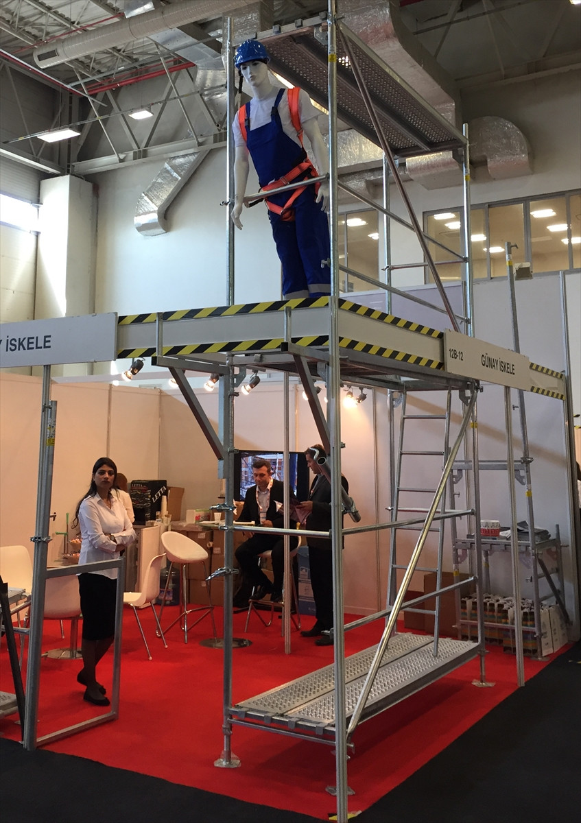 Etkinlik kapsamında fuar alanına kurulan inşaat iskelesi üzerinde, iskele kurulumu ve ve sökümü ile güvenli çalışma konuları uygulamalı olarak anlatıldı.