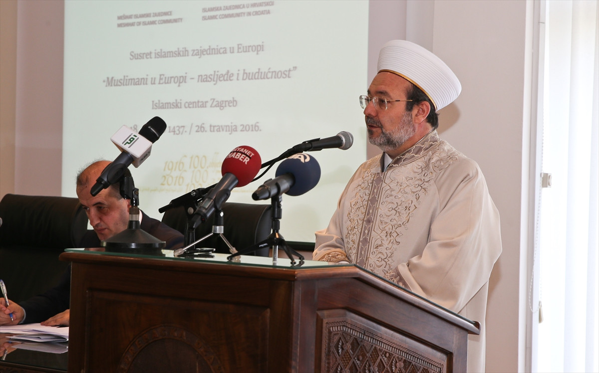 İslam'ın Hırvatistan’da resmi dinlerden biri olarak kabul edilmesinin 100. yılı dolayısıyla Zagreb İslam Merkezi’nde düzenlenen Avrupa İslam Cemiyetleri Buluşması’na katılan Görmez, burada yaptığı konuşmada, her yerde islamofobik nefretin yaygın olduğu bir zamanda Hırvatistan'da uluslararası bir toplantı düzenlenmesinin takdire şayan olduğunu söyledi.