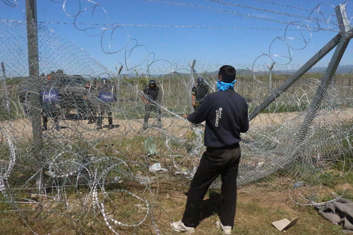 Öte yandan, yaklaşık 30 kişilik başka bir grup, Makedonya tarafından sınıra dikilen tel örgülerini sökmeye çalıştı. Sınır noktasındaki Makedon polisiyle tartışan grup "sınırı açın" sloganları attı.