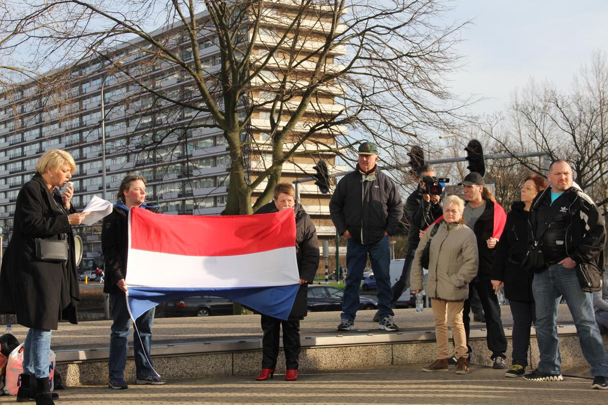 Hollanda bayraklarının açıldığı gösteride grup adına yapılan konuşmalarda, siyasetçilerin halkın sesini dinlemediğine işaret edildi.
