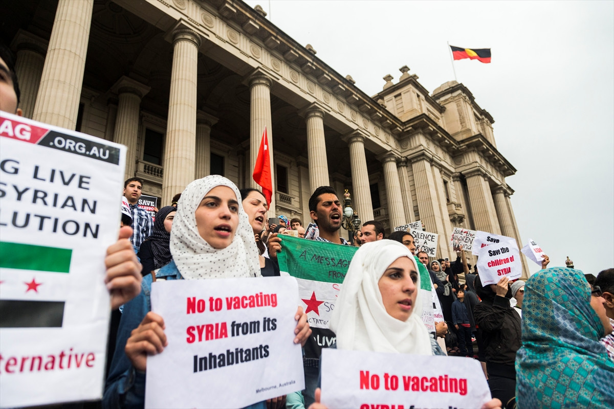 Melbourne kent merkezindeki Victoria Eyalet Parlamentosu önünde yüzlerce Avustralyalı Halep’te sivillere yönelik saldırıları kınamak üzere bir araya geldi. Avustralya Suriye Derneğinin girişimleri sonucunda sivil toplum kuruluşları tarafından organize edilen gösteriye, Avustralyalı Türkler de destek verdi.
