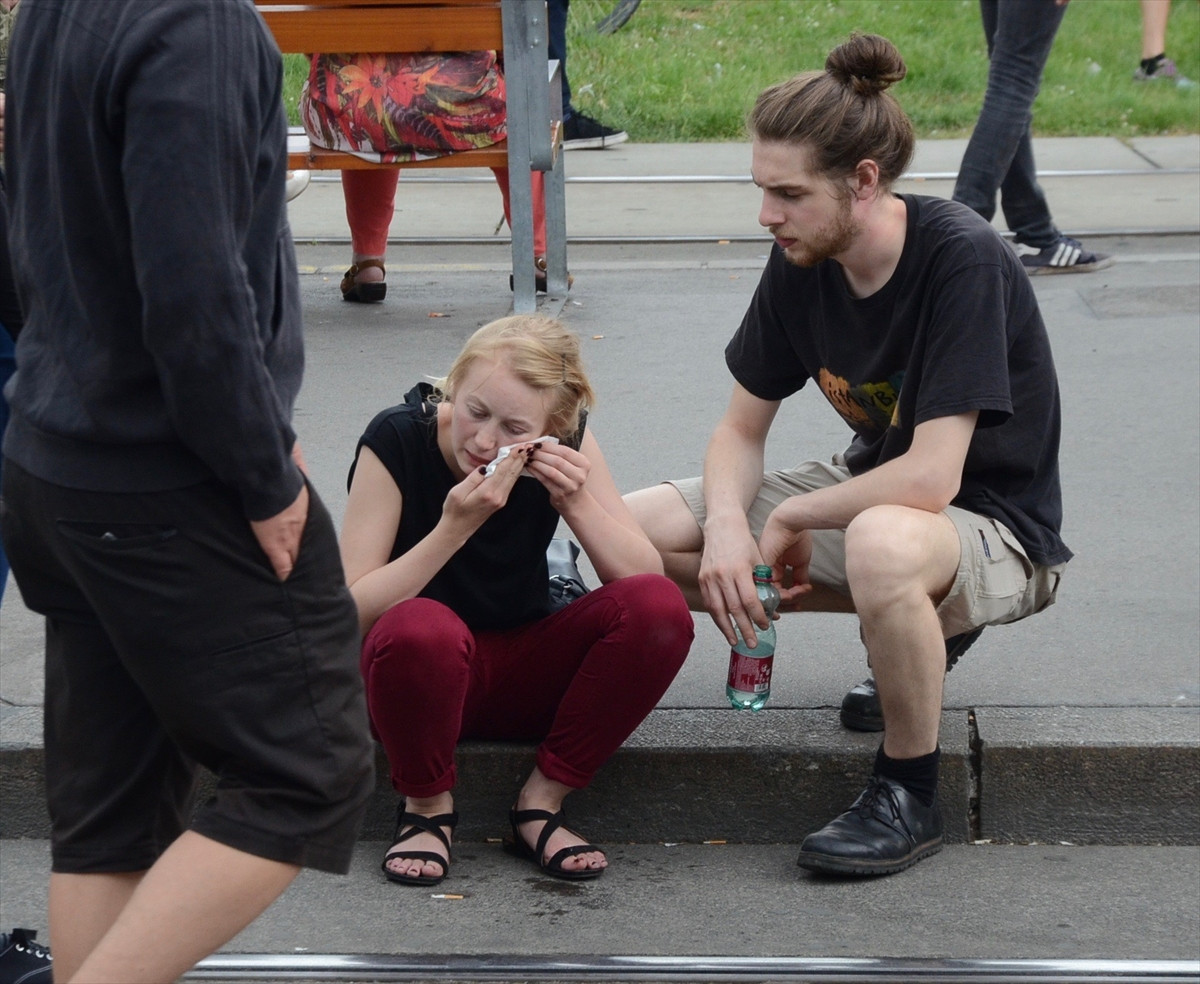Solcu gruplar ise "Naziler dışarı" ve "Irkçılara geçit yok" sloganları eşliğinde aşırı sağcı grubun yolunu yeniden kapattı. Polis, yolu kapatan gruba biber gazı ile müdahale etti. Sıkılan biber gazından başta eylemciler olmak üzere çok sayıda polis de etkilendi.