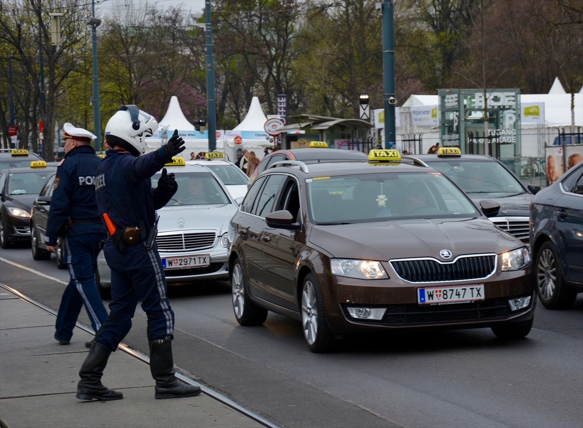 Viyana’nın 22. bölgesinden araçlarıyla yola çıkan yaklaşık 400 taksici, konvoy oluşturdu. Taksiciler yol boyunca kornalar çalarak "Uber" uygulamasını protesto etti.