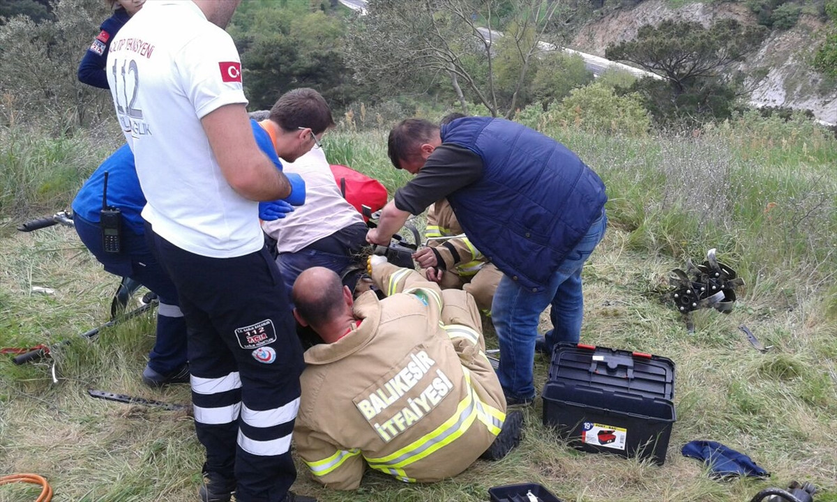 Bunun üzerine ambulansa çapa makinesiyle birlikte bindirilen Muzaffer Aksoy, Balıkesir Devlet Hastanesine kaldırıldı.