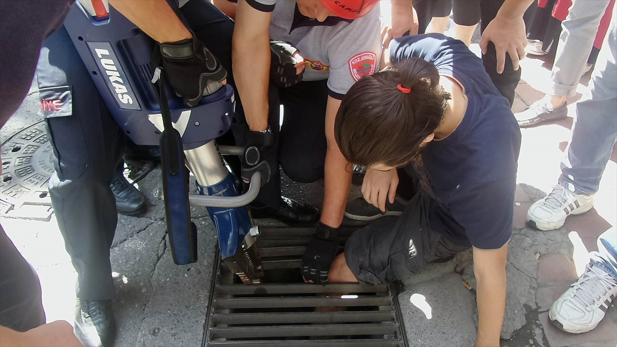 Erdemir Caddesi'nde yolun karşısına geçmek isteyen 19 yaşındaki Kutluğhan Ocak, bastığı mazgalın esnemesi sonucu sol ayağını sıkıştırdı.