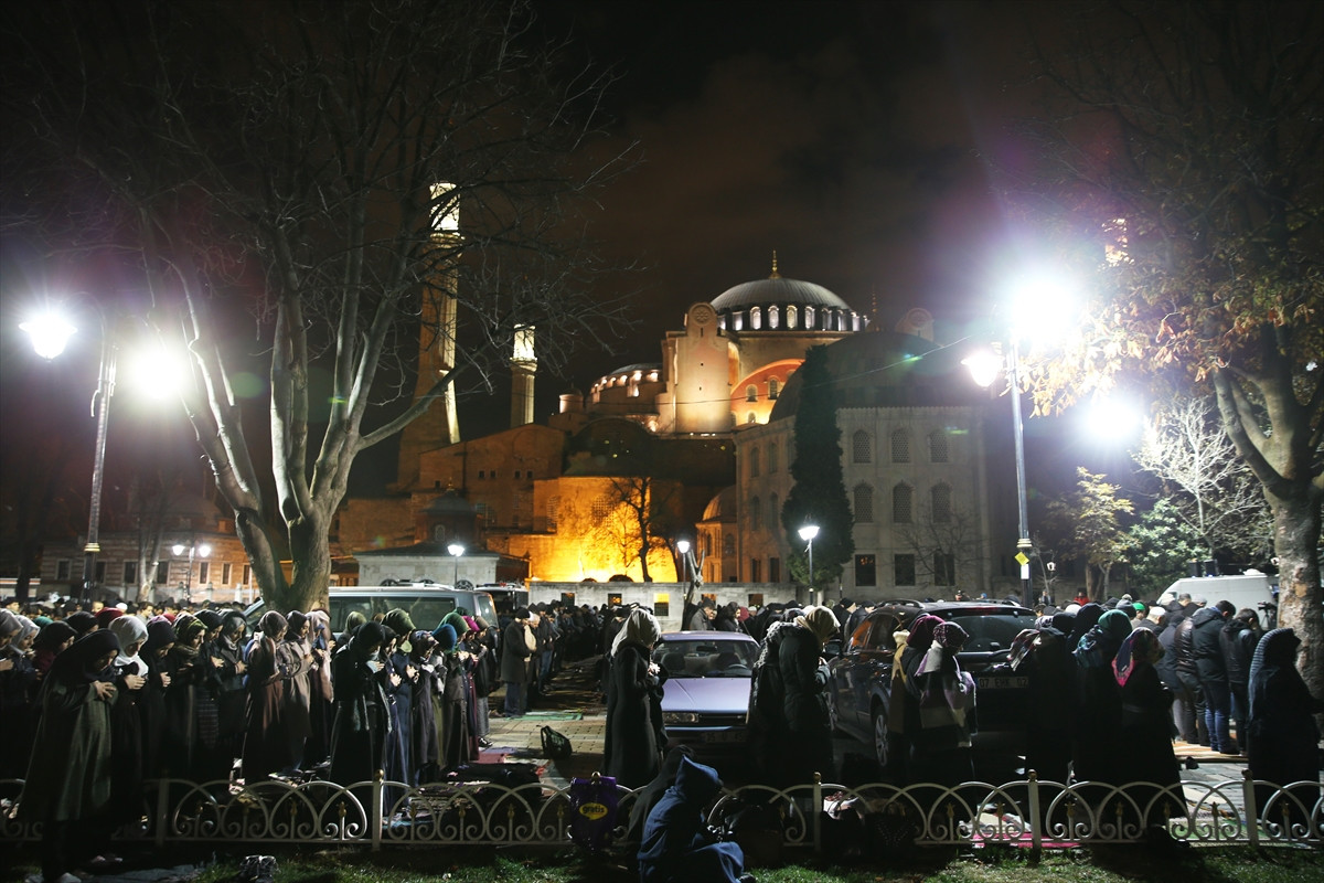 İSTANBUL (AA) - Anadolu Gençlik Derneği (AGD) üyeleri, Arakan, Halep ve Gazze'deki mazlumlar için Ayasofya Meydanı'nda teheccüd namazı kıldı.