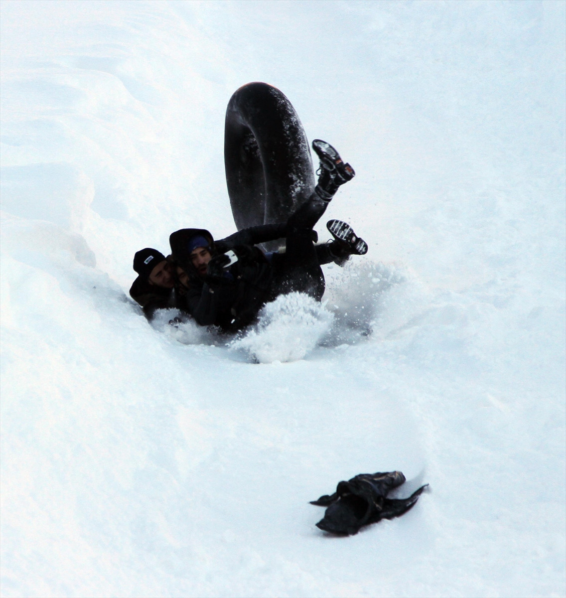 Ziyaretçilerden bazıları kar topu, bazıları da soğuk havada tulum eşliğinde horon oynadı.