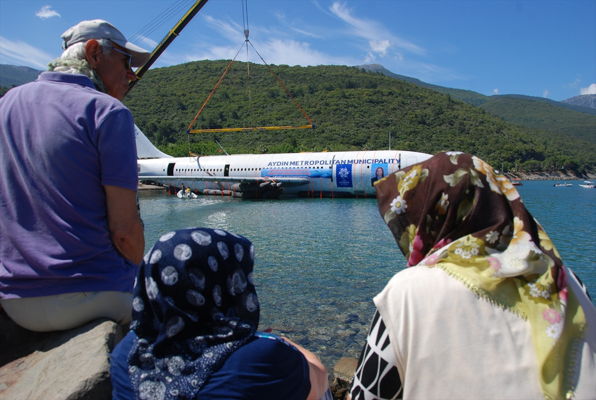 AYDIN (AA) - Kuşadası ilçesinde dalış turizminin canlandırılması amacıyla batırılması planlanan Airbus A300 kargo uçağı suya indirildi.