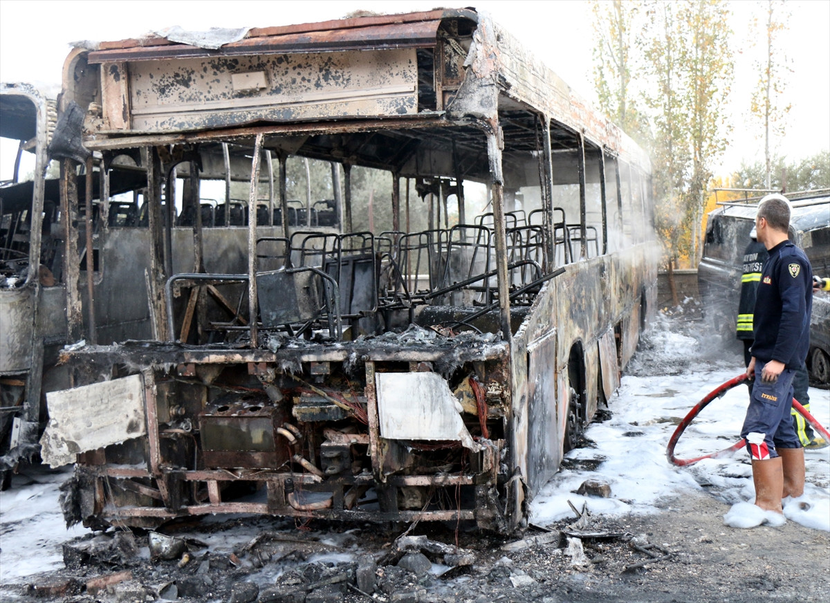 Hurdaya ayrılmış otobüslerden 11'i tamamen yandı, ekipler alevleri diğer araçlara sıçramadan söndürdü.
