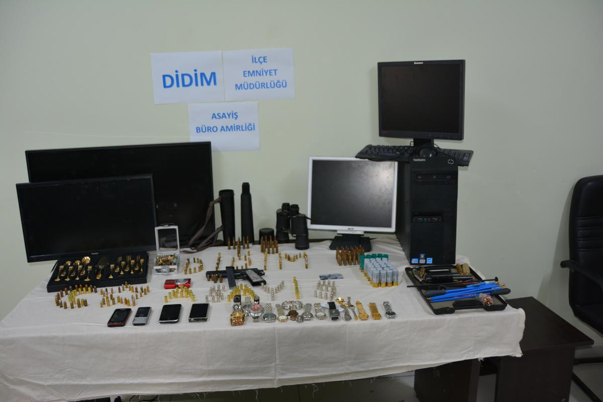 Araçta yapılan aramada çeşitli silahlara ait çok sayıda fişek ile 43 Kalaşnikof mermisi, B.Ş. ve O.T'nin saklandığı evde ise hırsızlık malı olduğu belirlenen çok sayıda eşya ele geçirildi.