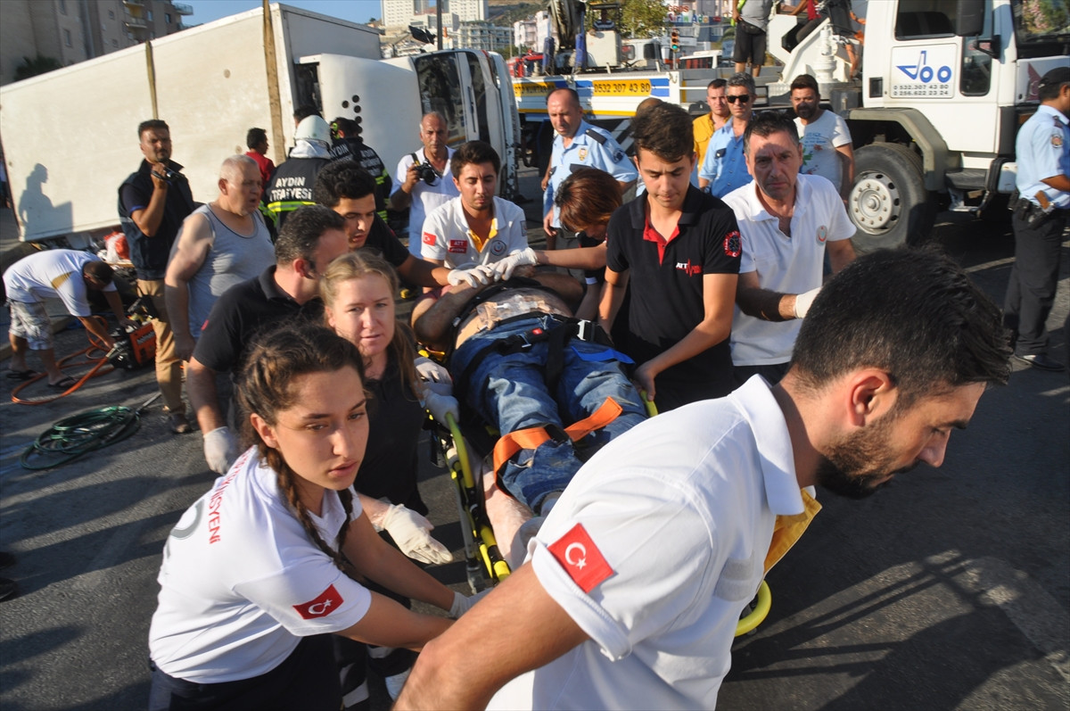 Alınan bilgiye göre, Serdal Ekinci yönetimindeki 35 AD 7258 plakalı kamyonet, Tütüncüler Kavşağı'nda ana yola çıkmaya çalışan 3 motosikletle çarpışarak devrildi.