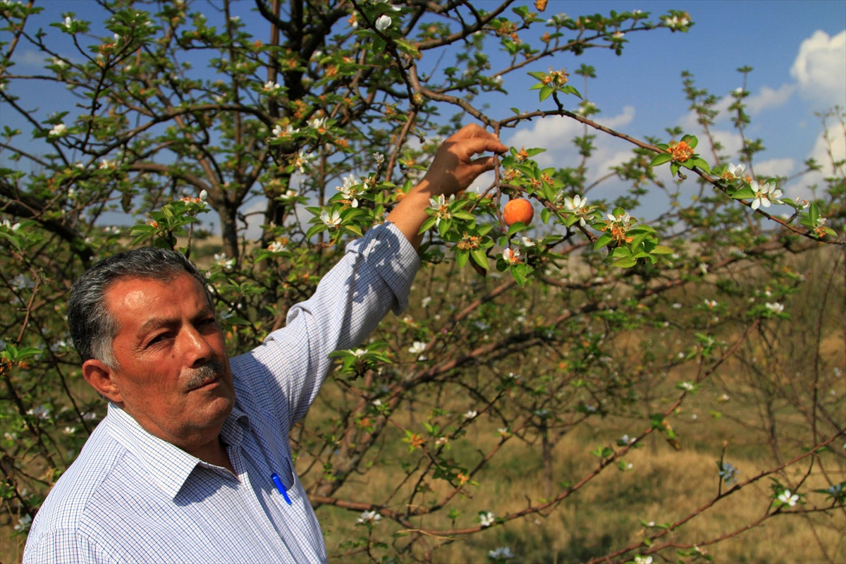 ÇANKIRI (AA) - Çankırı'nın Yapraklı ilçesine bağlı Şeyhosman köyünde bulunan bazı elma ağaçları, hasat edilmeyi beklerken çiçek açtı. Havaların sıcak gitmesine bağlı olarak çiçek açtığı tahmin edilen ağaçların dallarında aynı anda elmanın da bulunması görenleri şaşırtan bir görüntü oluşturdu.