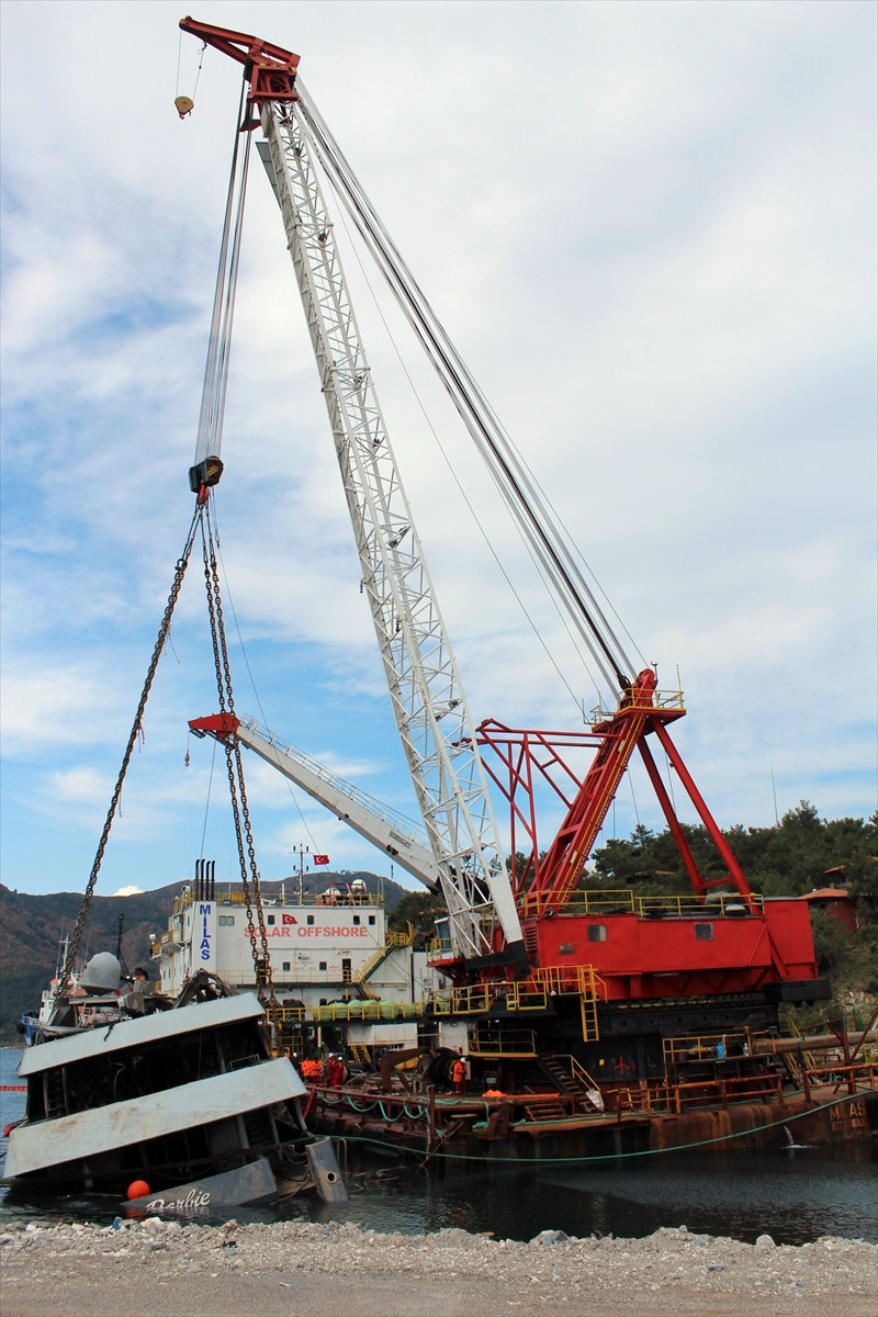 Yatın, boşaltılan tankları ile kapalı bölümlerine hava basılarak vinç yardımıyla deniz üstüne çıkartıldığını belirten Bora, bu işlem için daha önce testler yapıldığını, ayrıca denizin kirletilmemesi için de tedbirler alındığını söyledi.