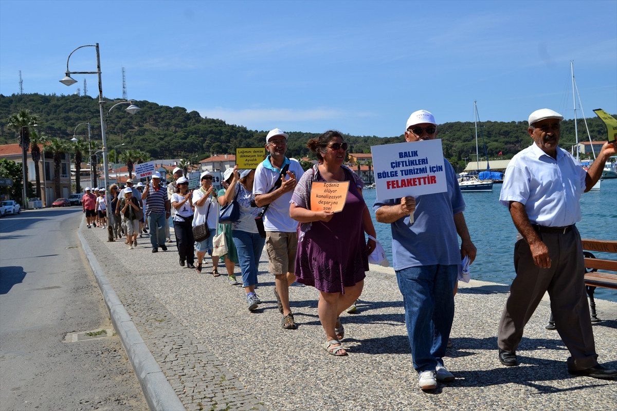 BALIKESİR (AA) - Ayvalık Tabiat Parkı Platformu üyesi bir grup, düzenledikleri yürüyüşle ilçede kurulmaya başlanan balık çiftliklerine tepki gösterdi.