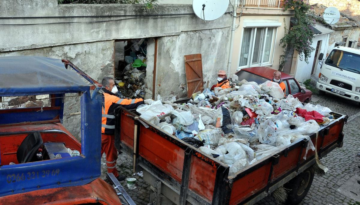 BALIKESİR (AA) - Balıkesir'in Ayvalık ilçesinde, daha önce değişik zamanlarda toplam 26 traktör dolusu çöp alınan evden bu kez de 3 traktör dolusu çöp çıkarıldı.