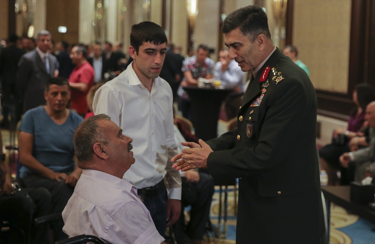 Genelkurmay Başkanı Orgeneral Akar ve kuvvet komutanları, davetliler arasında yer alan Türk Silahlı Kuvvetleri gazileri ve yakınlarıyla da sohbet etti. Gazilerle tek tek ilgilenen Orgeneral Akar, onlara sağlık durumlarının nasıl olduğunu sordu, yaklaşan Ramazan Bayramlarını tebrik etti.