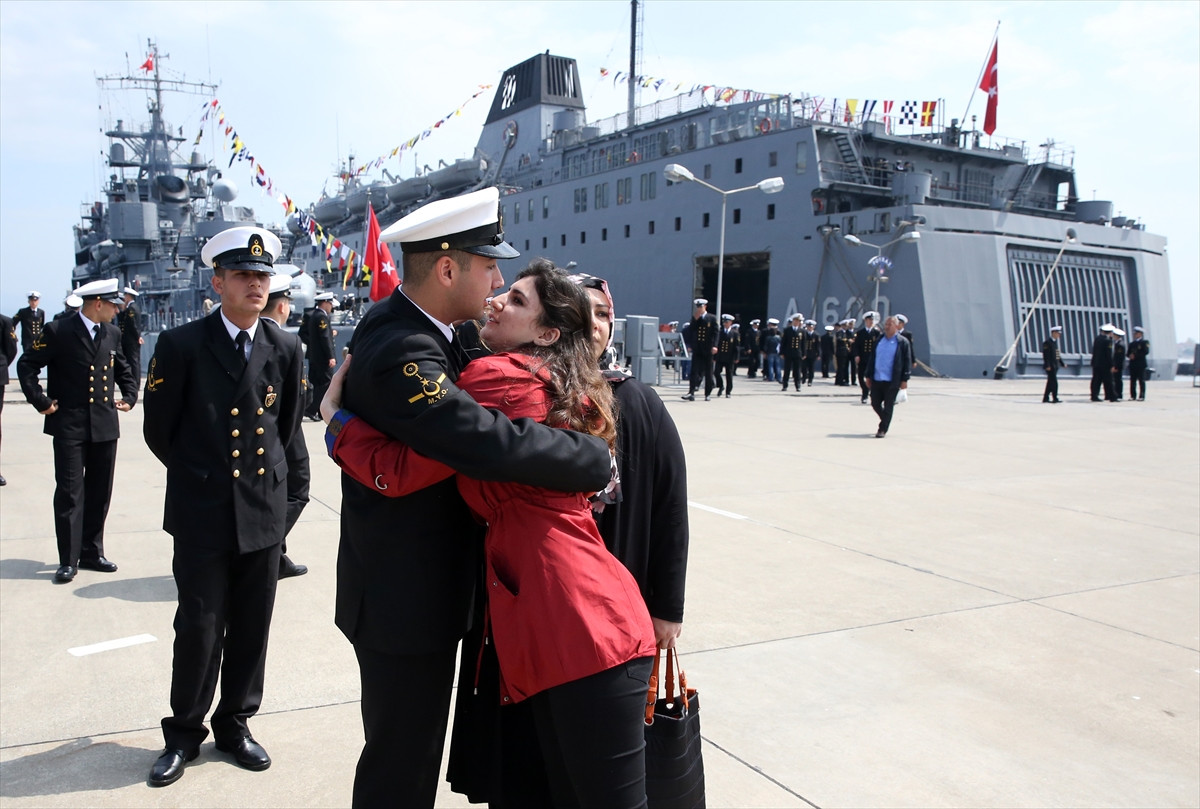 Komutanın "iyi seyirler" dilemesinin ardından TCG Sokullu Mehmet Paşa ve TCG İskenderun, limandan ayrıldı.