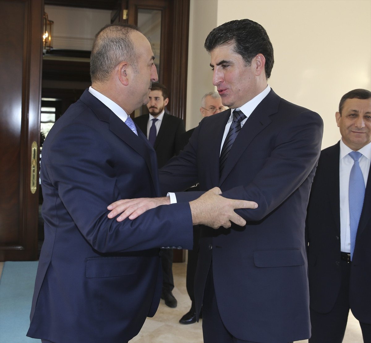 Dışişleri Bakanlığı Resmi Konutu'nda basına kapalı gerçekleşen görüşme yaklaşık 45 dakika sürdü. Görüşmede, ikili ve bölgesel konular ile son gelişmeler ele alındı. Ankara'da temasları kapsamında Başbakan Binali Yıldırım ile görüşen Barzani, gün içinde İstanbul'da Cumhurbaşkanı Recep Tayyip Erdoğan tarafından da kabul edilecek.