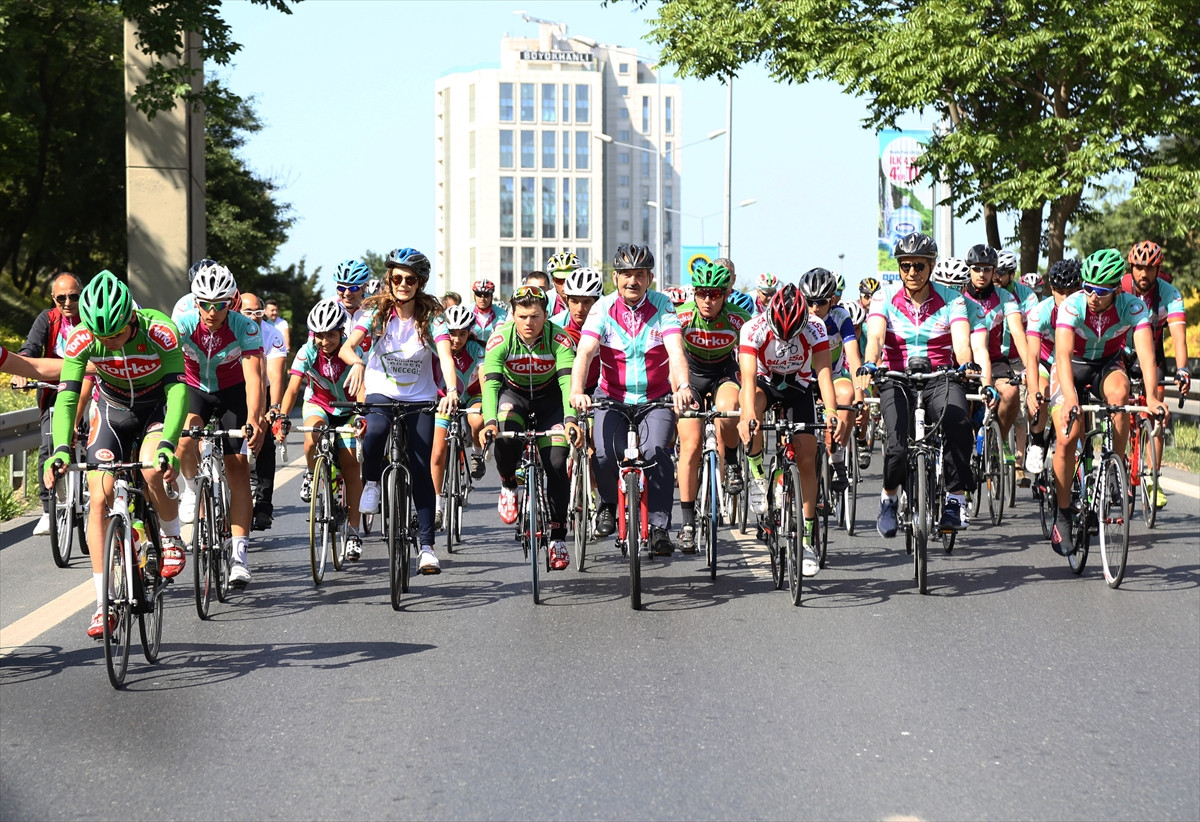 Türkiye Halk Sağlığı Kurumu Kanser Daire Başkanlığı ile Avrupa Jinekoloji Onkoloji Derneğinin iş birliğiyle düzenlenen program çerçevesinde, daha önce Viyana ve Ankara'dan yola çıkan bisikletli gruplar, Yıldız Teknik Üniversitesi Beşiktaş Kampüsünde buluştu. Bakan Müezzinoğlu, burada yaptığı konuşmada, kanserden korkmak yerine onunla mücadele etmek gerektiğini söyledi. Kadın kanserlerine karşı duyarlılığı arttırmak için teması, "Kadın kanserlerine Dur Diyoruz" başlıklı bisiklet turu düzenlendiğini belirten Müezzinoğlu, şöyle konuştu: "Kansere karşı mücadelenin esas itibarıyla çok da zor olmadığı inancını topluma, insanlığa yerleştirmek önemli. Çünkü kanserlerin en az üçte birini tedbirlerimizle bireysel olarak önleyebiliyoruz. Üçte birini de erken teşhisle yine yenebiliyoruz. İpin ucu esasında yüzde 70 oranında, bizim elimizdedir. Bizim elimizde olanları iyi yapmak lazım. Toplumun her kesiminde farkındalık oluşturmamız gerekir. Özellikle kadınlarımız bu anlamda, işin lokomotifini üstlenirse, inanıyorum ki başarı çok daha hızlı gelecektir." Müezzinoğlu, tütünle mücadele konusunda Türkiye'nin dünya ödülünü almış almanın gururunu yaşadığını vurguladı. Akciğer kanserlerinde 2014 yılında 23 bin olan teşhisin, 2015'li yıllarda 19 binlere kadar indiğini aktaran Müezzinoğlu, "Tütün ürünlerinin sebep olduğu kanser teşhis sayımız 33 binlerden 30 binlere indi. Bu da tütünle mücadelenin bir başarısıdır. Hareketli yaşam ve obezite ile olan mücadelemizi çok daha iyi noktaya getirmeye çalışıyoruz. Bunu yalnız Sağlık Bakanlığı olarak başaramayız. Tabii ki liderlik yapmamız gerekiyor ama bunu toplumsal sahiplenmeyle elde edebiliriz." dedi. Konuşmasının ardından Müezzinoğlu ve diğer gruplar, kadın kanserleri konusunda farkındalık oluşturmak amacıyla Boğaziçi Köprüsü'nü bisikletle geçti. O sırada köprü tek şeritli olarak trafiğe kapatıldı. Ayrıca etkinlik sırasında pembe balonlar uçuruldu. - Sağlıklı yaşamın önemi Müezzinoğlu, etkinliğin ardından basın mensuplarının sorularını yanıtladı. Sağlıklı ve dengeli yaşama dikkati çeken Müezzinoğlu, birçok hastalığa karşı koruyucu ana başlıklardan birinin hareketli yaşam olduğunu vurgulayarak, şunları anlattı: "Temel 3 tane ana başlığımız var. Bunlardan biri kötü alışkanlıklardan uzak durmak, diğeri sağlıklı beslenmek, üçüncüsü de hareketli yaşam. Bugün Avrupa Yakası'ndan başlayarak hareketli yaşamda kadın kanserlerine karşı duyarlılığı artırabilmek adına, Boğaz Köprüsü'nden Anadolu Yakası'na geçtik. Kimlerle geçtik? Avusturya ve Viyana'dan çıkıp 2002 kilometre yol yaparak İstanbul'a gelen yurt dışındaki duyarlılık kazandırmak isteyen bisiklet dostlarıyla, diğer taraftan Ankara'dan yola çıkan 506 kilometrelik yol yaparak buraya gelen bisikletçilerimizle. Boğaz Köprüsü'nden Rumeli Yakası'ndan Anadolu Yakası'na yaklaşık 1600 kilometrelik mesafeyi bisikletçilerimizle geçtik." Müezzinoğlu, insanın kendisine değer vermesinin ve sevdikleriyle sağlıklı bir gelecek planlamasının önemine değinerek, "Hasta olan bir insanın tek bir hayali vardır. O da iyi olmaktır. Öyleyse kendimize saygı duyarak sevdiklerimize değer vererek ve bu 3 kelimeyi, hayat felsefesi ve yaşam kültürüne yerleştirelim. Tütün ve tütün ürünlerinden, alkol ve alkolizmden uzak durmak gerekiyor. Sağlıklı beslenmek ve bir de hareketli yaşama önem vermek, kanseri yüzde 50 oranında önlüyor. O zaman kendinize saygı duyun, günde 30 dakika, yarım saat hareketli yaşamı kültürünüze yerleştirin." diye konuştu. Bakan Müezzinoğlu, daha sonra bisikletlilerle hatıra fotoğrafı çektirdi.