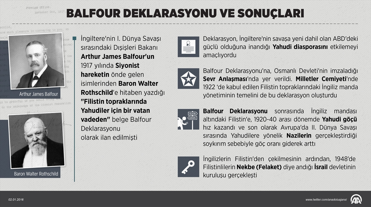 RAMALLAH (AA) - Filistin Kurtuluş Örgütü (FKÖ), İngiltere'den, Filistin halkına karşı işlediği ve "Balfour Deklarasyonu" olarak isimlendirilen "suçtan" geri adım atmasını istedi.