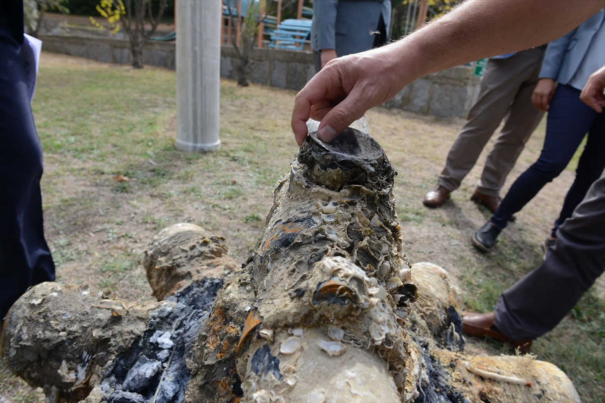 ÇANAKKALE (AA) - Çanakkale Boğazı'nda bir balıkçı teknesinin ağlarına takılan ve savaştan kalma olduğu tahmin edilen yaklaşık 2 metrelik uçak pervanesi, Çanakkale Savaşları Gelibolu Tarihi Alan Başkanlığında inceleniyor.
